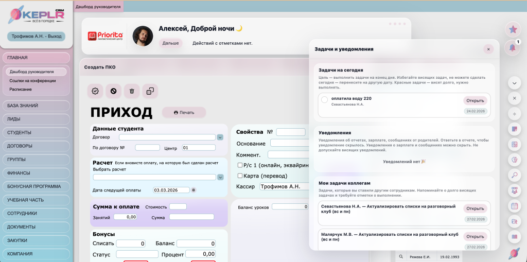 KEPLR CRM — это наша авторская разработка и та самая CRM, которая помогает нам управлять всеми процессами школы на всех уровнях ее работы. Мы не зависим от сторонних разработчиков. В нашей CRM мы можем реализовать любую идею!