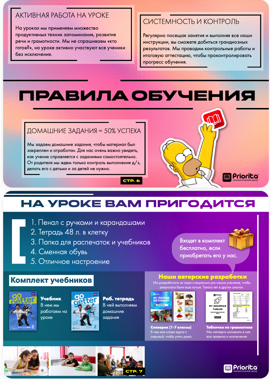 Это пара страниц из Памятки родителя, которую администраторы демонстрируют клиентам в момент заключения договора.