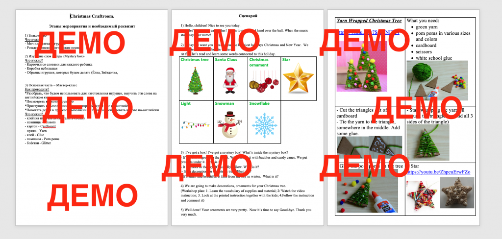 Готовый сценарий мероприятия на тему Christmas в формате воркшопа по созданию елочной игрушки своими руками. Мероприятие проводится на английском языке. Подобный мероприятия отлично показывают себя: ведь помимо практики языка, дети получают по итогу елочную игрушку, которую могут принести домой.