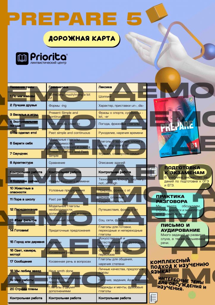 Демо (на примере учебника Prepare 5, дорожные карты выполнены в одном стиле, но с разными цветами и символами)